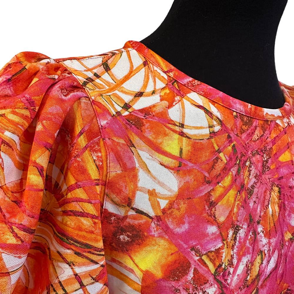 Anna-kjolen har en let taljeret pasform med en blød A-facon, der klæder mange forskellige kropstyper. Kjolen syes med pufærmer og brystindsnit, og du kan vælge mellem rund eller V-formet halsudskæring samt korte eller 3/4-lange ærmer.