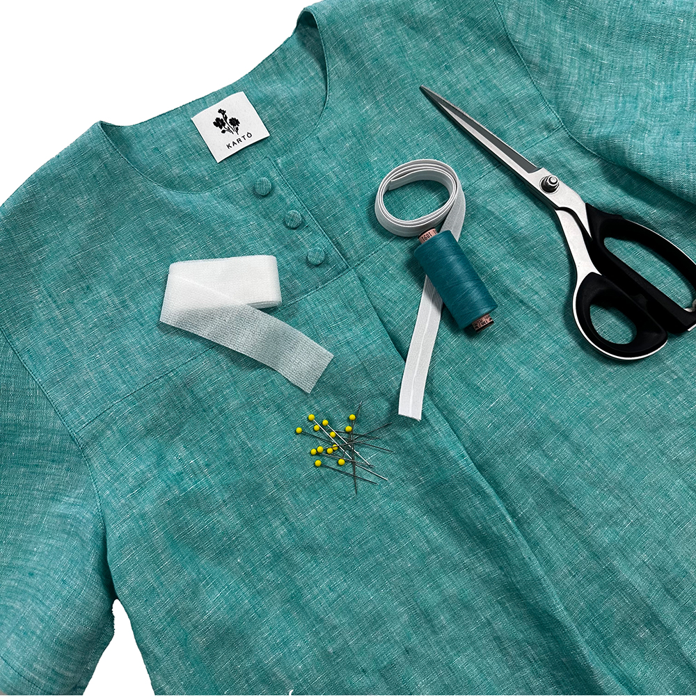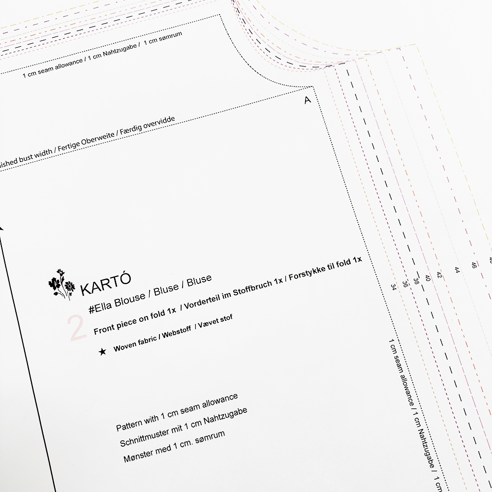 Ella er en klassisk og samtidig afslappet skjortebluse med fine detaljer og et flot fald. Modellen har bærestykke med læg, som giver god bevægelse og et let, feminint udtryk. Du kan sy Ella på flere måder – med krave eller uden krave, samt med lange ærmer med elastikafslutning eller korte ærmer. Lukningen kan laves med knapper eller som en mere enkel variant uden knapper.