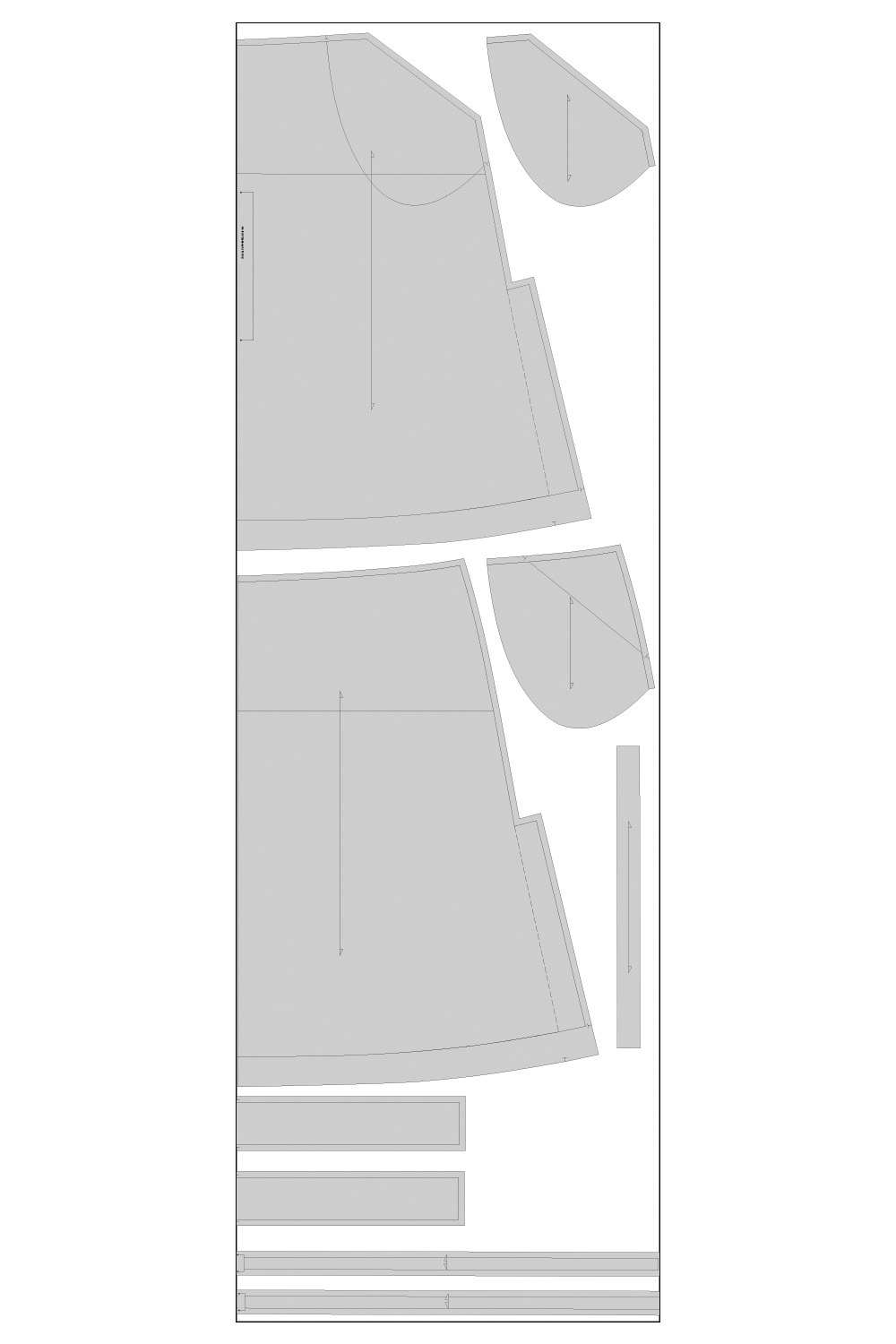 På dette mønster bruges forskellige symboler for tydeligt at angive, hvilke dele der skal klippes i stof, foer og vlieseline.